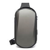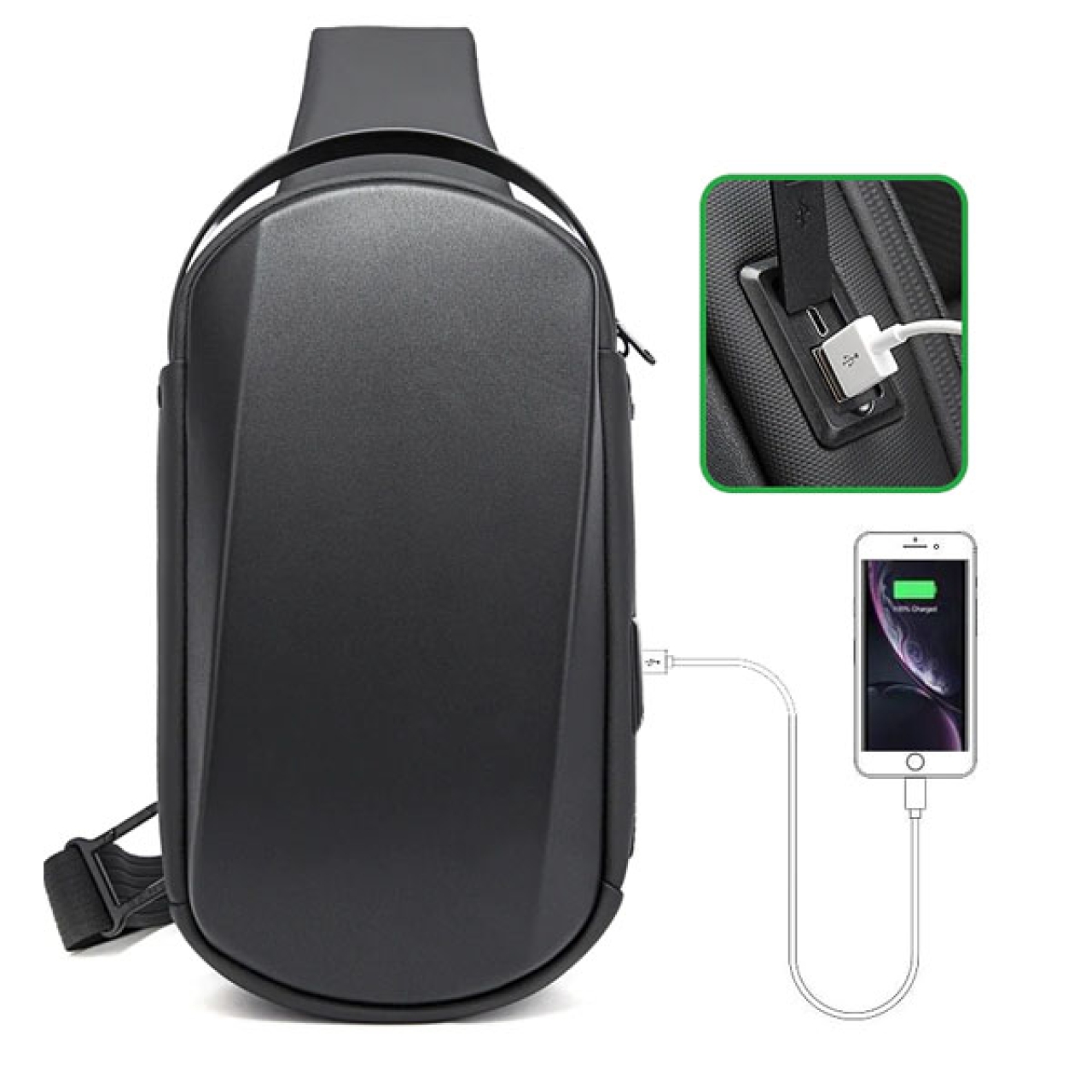 علاوه بر ظاهر جذاب ، از کیفیت بالایی برخوردار است و متریال قسمت جلویی ، ضد خش و ضد ضربه میباشد . به این نوع کیفها ، Sling گفته میشود که به صورت یک طرفی بر روی یک دوش قرار میگیرد و میتوانید محفظهی آن را در پشت و یا جلوی بدن خود قرار دهید . این نوع کیفها برای استفادهی روزمره ، پیاده روی ، دوچرخه سواری ، کوه نوردی و … مناسب است . همچنین کسانی که یکی از شانههای آنها آسیب دیده و نمیتوانند از کوله پشتیهای دو بندی استفاده کنند ، این نوع کیفها بهترین گزینه برای استفاده میباشند . ویژگیهای کوله پشتی تک بند بنج مدل 7256 : مجهز به یک محفظهی بزرگ و تفکیک شده است که یک آیپد 8.5 اینچی ، موبایل ، پاوربانک و … را میتوانید درون آن جای دهید . یک محفظهی زیپ دار در قسمت پشتی است و هنگامی که کیف را بر روی دوش حمل میکنید در پشت کمر قرار میگیرد و به راحتی قابل دیدن و دسترسی نیست . قسمت پشتی از توری قابل تنفس تشکیل شده تا در دمای زیاد و استفادهی طولانی مدت ، از تعریق جلوگیری کند . یک محفظهی کوچک بر روی بند برای کارتهای اعتباری نیز تعبیه شده است . در یک طرف کیف ، رابط USB-A و Type-C تعبیه شده تا موبایل را به پاوربانک متصل کنید و پاوربانک را درون کیف قرار دهید . درون محفظه اصلی یک حلقه برای کلید قرار دارد که بند آن قابلیت کشسانی دارد و نیازی به جدا کردن کلید نمیباشد و دیگر نگرانی بابت کلید های خود نخواهید داشت . متریال آن در برابر پاشش آب مقاومت است و در هوای بارانی نیز میتوانید از آن استفاده کنید .